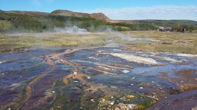 Po dveh urah vožnje smo prispeli na prizorišče, kjer so snemali popularno serijo Game Of Thrones – mestu, kjer se razmikata evrazijska in severnoameriška tektonska plošča – Þingvellir. Tam smo se sprehodili preko razgibane in raznolike pokrajine. Vožnjo smo nadaljevali proti veličastnim gejzirjem v dolini Haukadalur, kjer smo imeli na voljo uro in pol časa, da si ogledamo pokrajino in naravne znamenitosti ter pojemo kosilo. Največji gejzir, po katerem so ti naravni pojavi dobili svoje ime (Geysir) izbruhne le še občasno; smo pa zato bili priča izbruhom nekoliko manjšega gejzirja, ki se pojavijo na vsakih 5 do 10 minut.