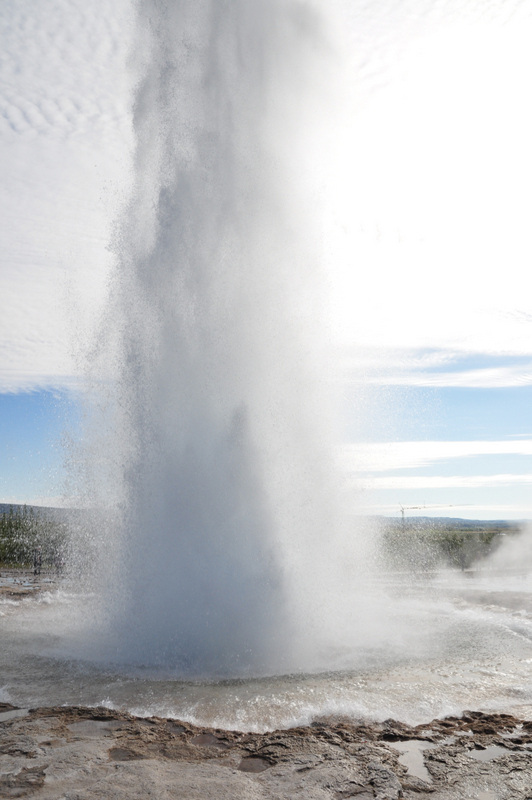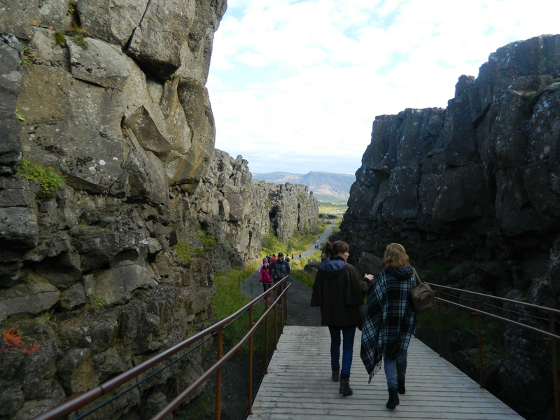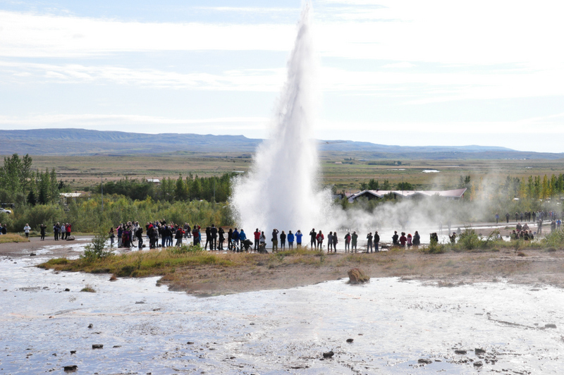 Po dveh urah vožnje smo prispeli na prizorišče, kjer so snemali popularno serijo Game Of Thrones – mestu, kjer se razmikata evrazijska in severnoameriška tektonska plošča – Þingvellir. Tam smo se sprehodili preko razgibane in raznolike pokrajine. Vožnjo smo nadaljevali proti veličastnim gejzirjem v dolini Haukadalur, kjer smo imeli na voljo uro in pol časa, da si ogledamo pokrajino in naravne znamenitosti ter pojemo kosilo. Največji gejzir, po katerem so ti naravni pojavi dobili svoje ime (Geysir) izbruhne le še občasno; smo pa zato bili priča izbruhom nekoliko manjšega gejzirja, ki se pojavijo na vsakih 5 do 10 minut.