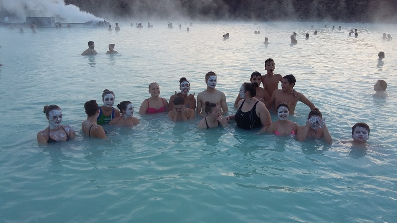 Po končanem ogledu smo se odpeljali nazaj v Reykjavik, kjer so nas že pričakali naši gostitelji, s katerimi smo se odpeljali do Modre Lagune - enega najbolj obiskanih kopališč na Islandiji. Tam smo uživali v termalnih vodah in zdravilni maski iz belega blata. Nekateri smo preizkusili tudi turško in finsko savno. Izkušnja je bila pozitivno sproščujoča. Od tam so nas gostitelji odpeljali na večerjo in domov.